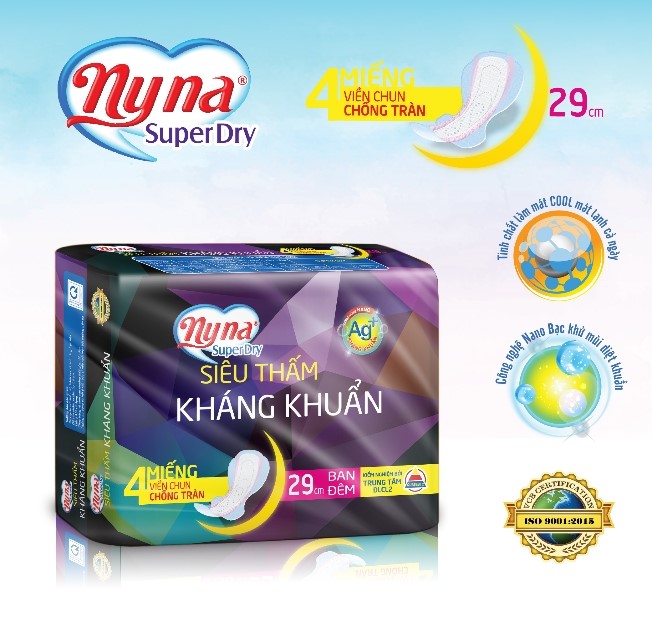 Băng Vệ Sinh NYNA Ban Đêm 4 Miếng Dài 29cm Siêu Thấm Kháng Khuẩn